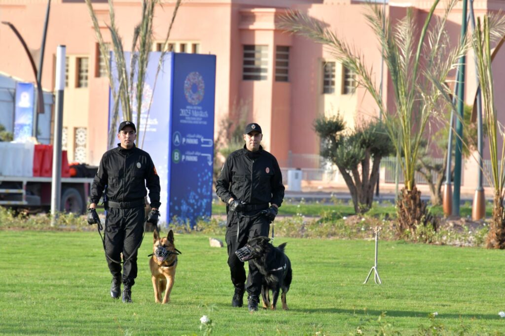 كما يتم استغلال هذا التجمع الكامل للقوات العمومية لإجراء تمرين محاكاة للترتيبات الأمنية، يقيس استعداد كل الوحدات والفرق الشرطية ومدى استيعاب دورها في هذا العمل النظامي، بالإضافة إلى اختبار آليات التنسيق وسلسلة اتخاذ القرار ونقله وتنفيذه بين القطاعات الأمنية، وكذا اختبار مدى استجابة القوات العمومية لبروتوكولات الاستجابة لحالات الطوارئ. العمليات الميدانية.. تخصصات شرطية بحجم التحديات مواكبة للمعايير المعتمدة على الصعيد الدولي في تأمين التظاهرات الكبرى، اعتمدت أجهزة الأمن المغربية لتأمين القرية التي تحتضن الاجتماعات السنوية لصندوق النقد الدولي والبنك الدولي بمنطقة “باب إغلي” بمراكش مستويات عدة من المراقبة الأمنية.