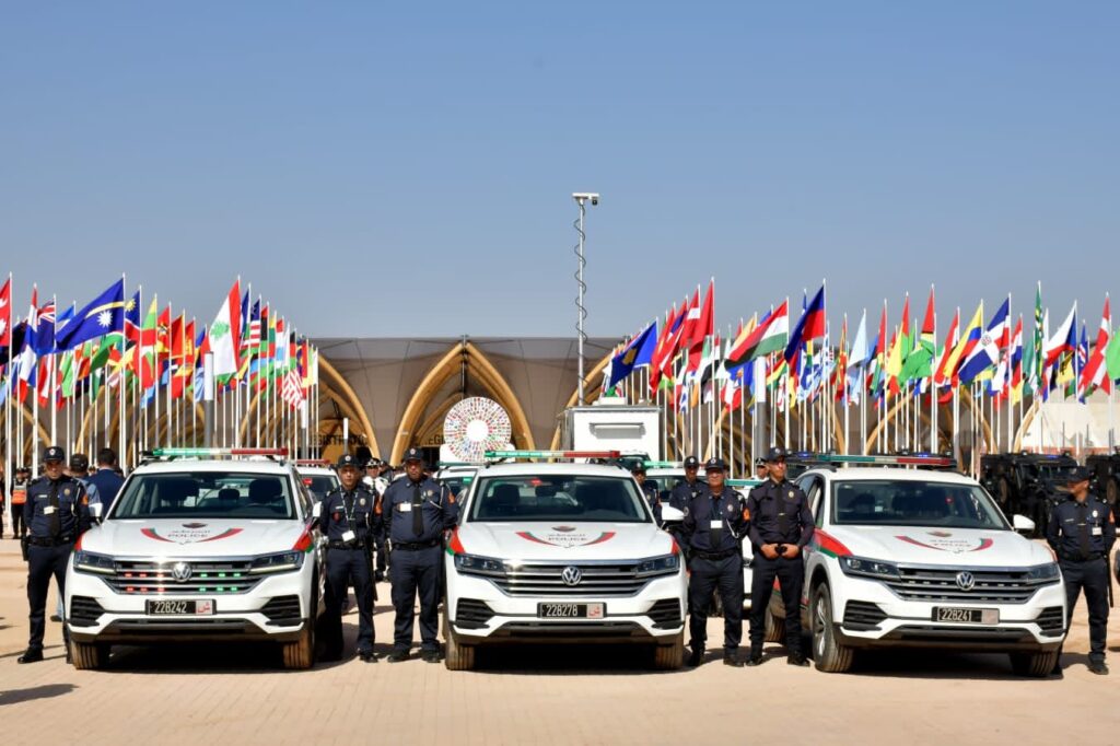 كما تم نشر دوريات للشرطة سريعة الحركة وأخرى مختصة في الرصد الإلكتروني باستعمال الكاميرات الحرارية وفي سياق متصل، أنشأت مصالح الأمن الوطني مفوضية للشرطة خاصة بهذا الحدث، تتوفر على قاعة خاصة بتدبير نظام الاتصالات والمراقبة بالكاميرات، كما تتوفر على دائرة أمنية توفر كافة الخدمات الشرطية الضرورية لزوار فضاء التظاهرة، وهي المفوضية الشرطية التي تجمع بين فوائد الفعالية والقرب في العمل، وبين الاستقلالية في تنفيذ البروتوكول الأمني.