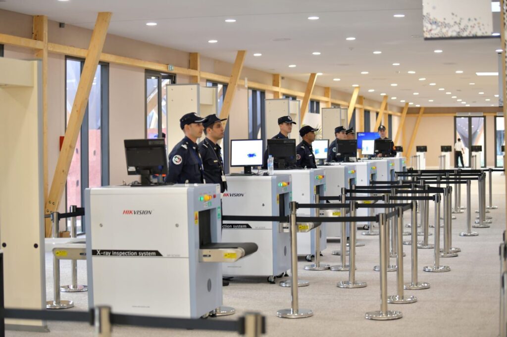 وقد شملت هذه المستويات أولا حزاما أمنيا من فرق المحافظة على النظام وفرق السير والجولان ودوريات الشرطة المحمولة والمزودة بكاميرات مراقبة متطورة، مهمتها تأمين وصول المشاركين بطريقة سلسلة ودون عرقلة، مع منع توافد وصول أي شخص أجنبي عن الحدث إلى المنطقة الخاصة. وعلى مستوى بوابات القرية، تم تنصيب مستوى ثاني من المراقبة الأمنية، من خلال اعتماء أجهزة للمسح الضوئي والتفتيش باستعمال تقنيات جد متطورة، قادرة على كشف كافة أنواع التهديدات ومصادر الخطر، فضلا عن توفير بوابات إلكترونية ذكية وعناصر بشرية عالية الخبرة في التفتيش الدقيق. مدعومة بفرق من الشرطة السينوتقنية تتوفر على مجموعة من الكلاب المدربة على كشف جميع أنواع المتفجرات والمواد الكيماوية الخطيرة.