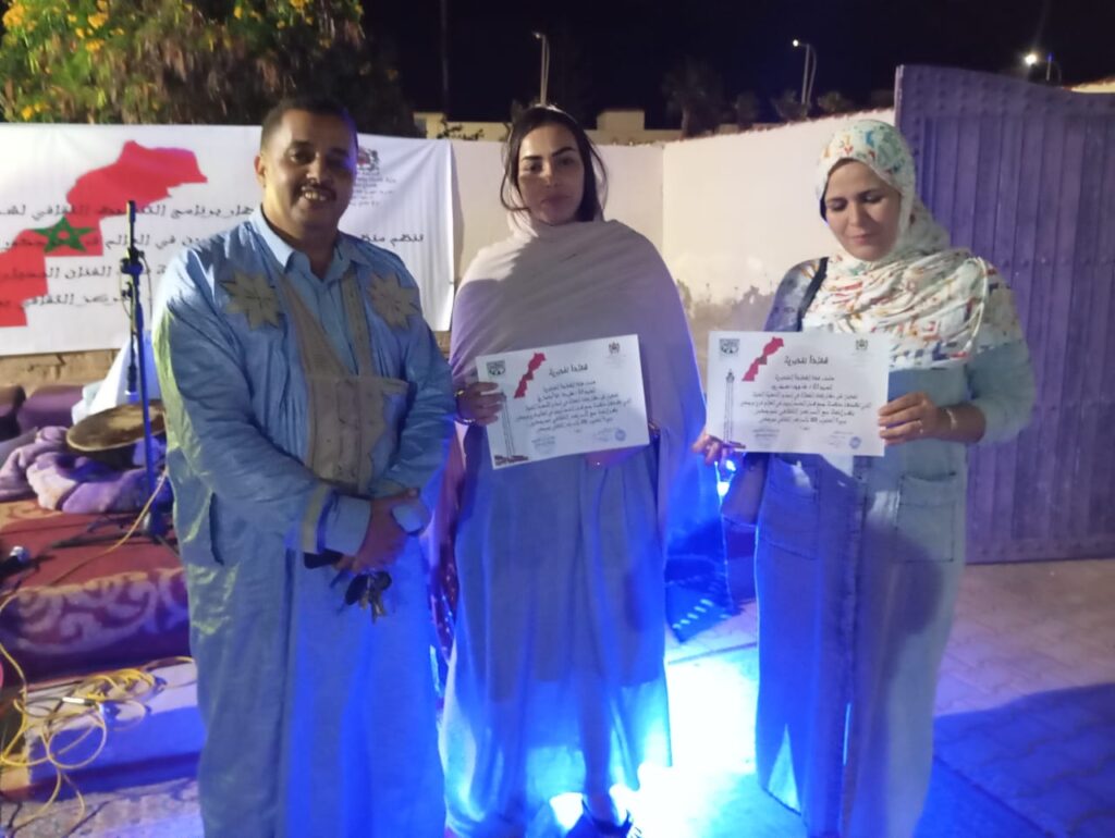 وتأتي هذه الأمسية في إطار الجهود المبذولة لتعزيز الثقافة الصحراوية والحفاظ على التراث المحلي.تخللت الأمسية أيضًا توزيع جوائز تقديرية على المشاركين الذين ساهموا في نجاح هذه الفعالية الفنية، وهو ما يعكس تقدير المنظمين للجهود المبذولة في إنجاح الحدث وتعزيز روح التعاون بين مختلف الفاعلين الثقافيين.
