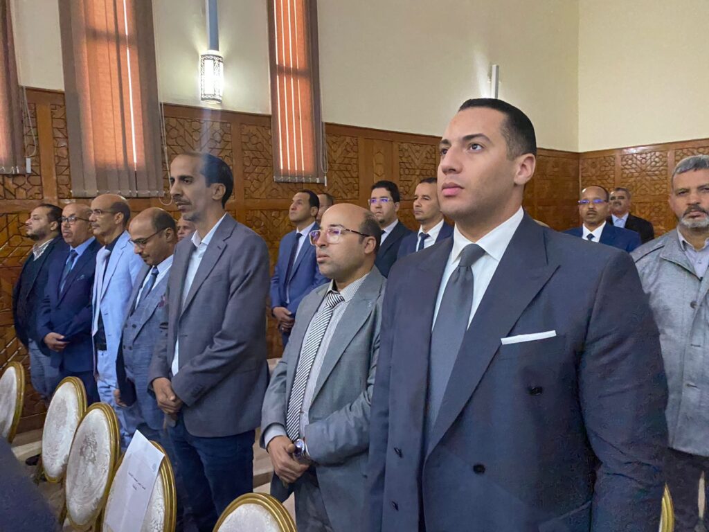 كما أتقدم بالشكر الجزيل للسيد عبد اللطيف الشنتوف عضو المجلس الأعلى للسلطة القضائية ممثل السيد الرئيس المنتدب للمجلس الأعلى للسلطة القضائية، والسيدة إيمان المالكي ممثلة السيد الرئيس المنتدب للمجلس الأعلى للسلطة القضائية، والسيد حمزة الصاعد ممثل السيد رئيس النيابة العامة، والسيد محسن الرمضاني ممثل السيد وزير العدل على تكبدهم مشاق السفر للحضور معنا في هذه الجلسة الرسمية، ولكل من شرفنا بالحضور في هذه الجلسة.